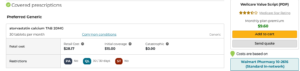 Below is an example using the Wellcare Value Script (PDP) plan available in Missouri. In this example we are comparing the cost of Atorvastatin, a commonly prescribed cholesterol medication.